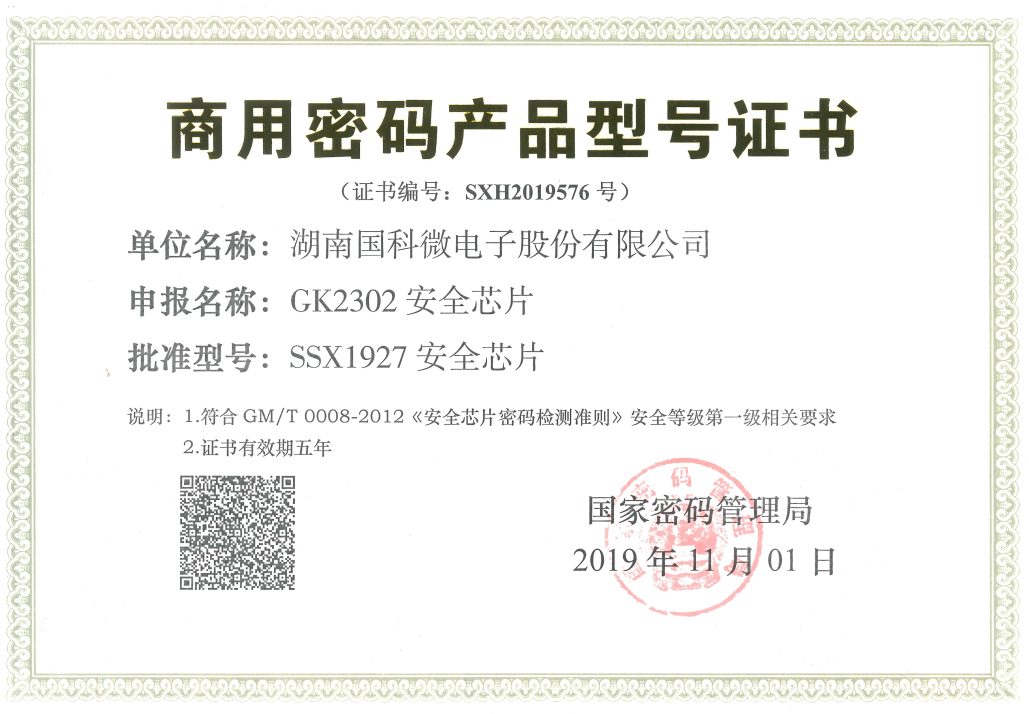 商用密码产品型号证书GK2302
